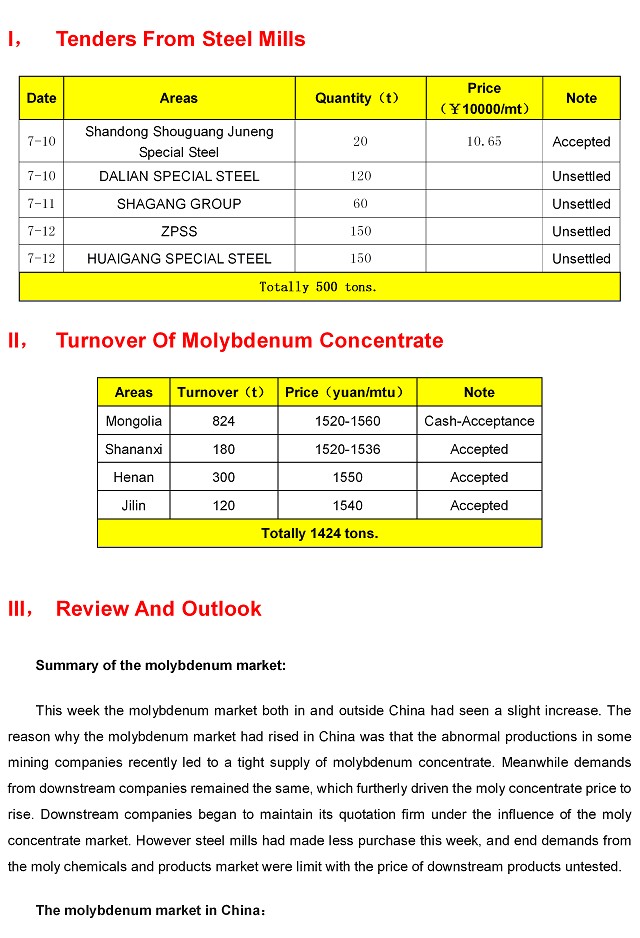 Keyword:Molybdenum Weekly