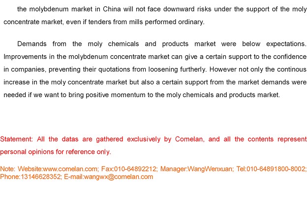Comelan Molybdenum Weekly May 28-June1, 2018