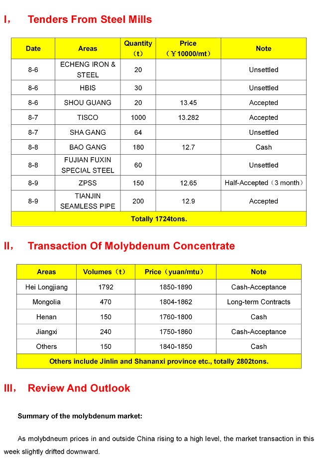 Keyword:Molybdenum Weekly