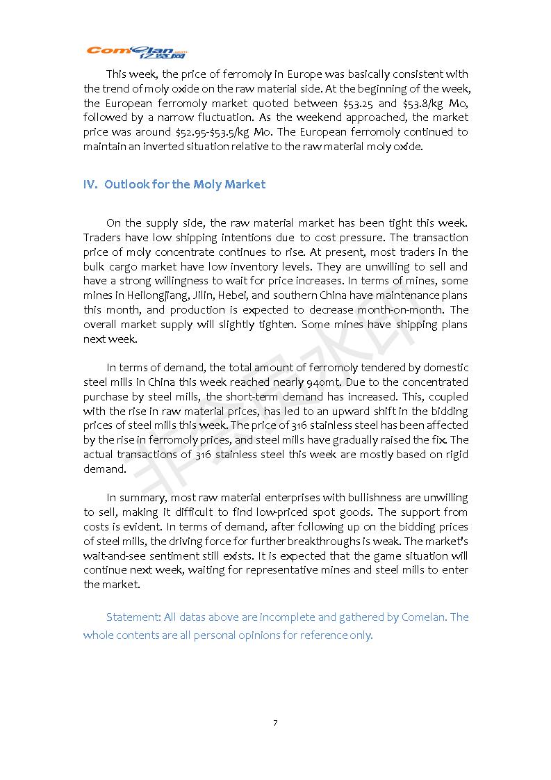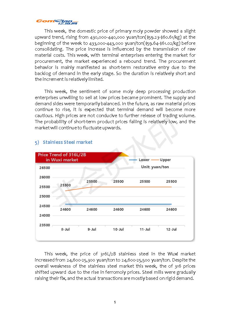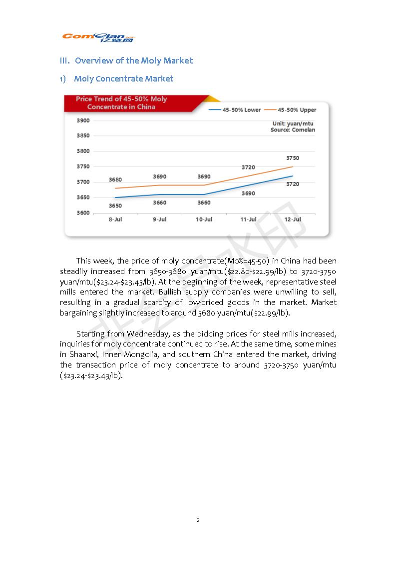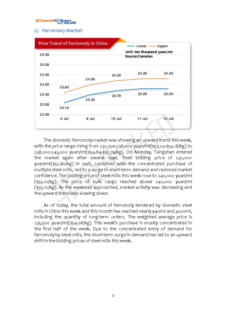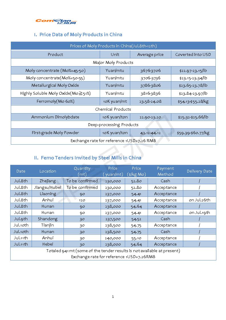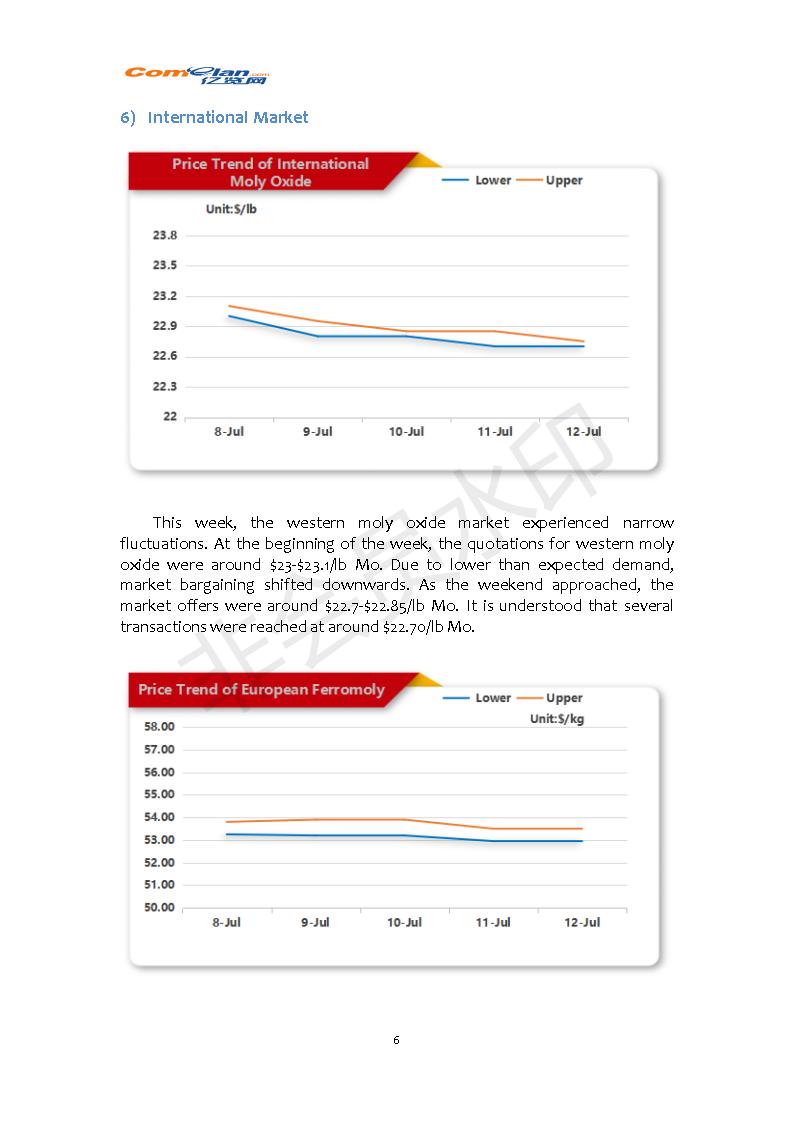 Comelan's Weekly Report on Moly Market(Jul.8th-12th,2024…