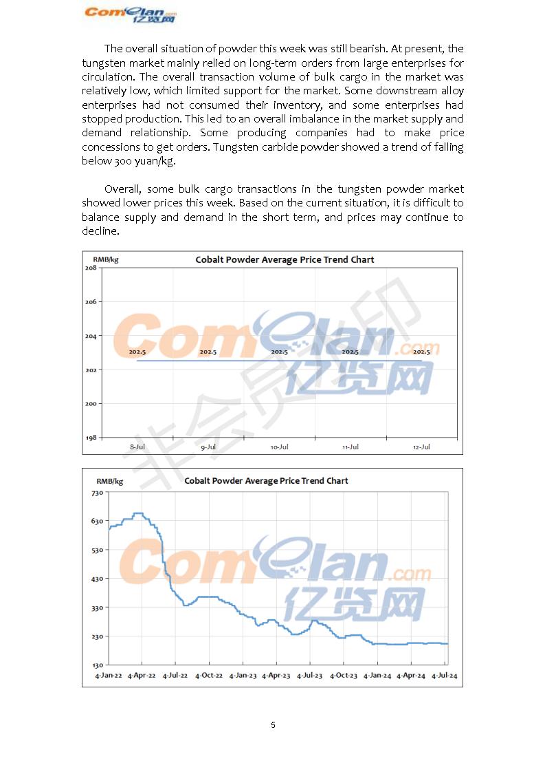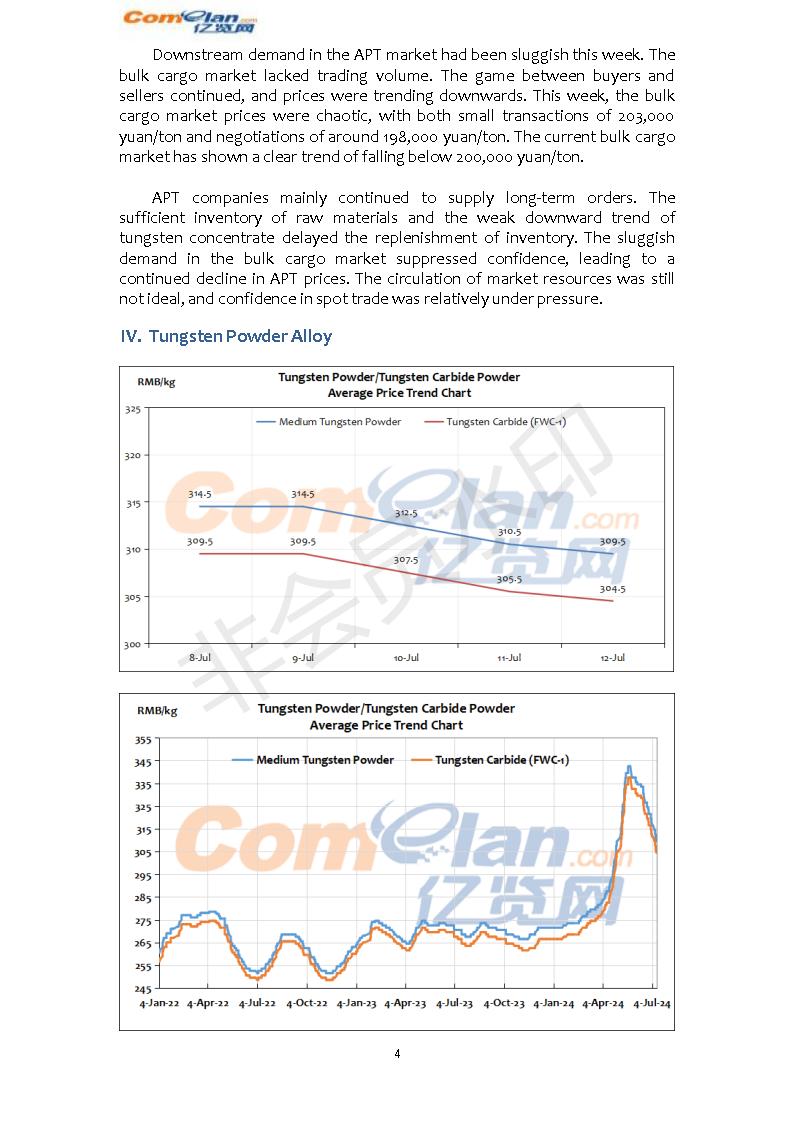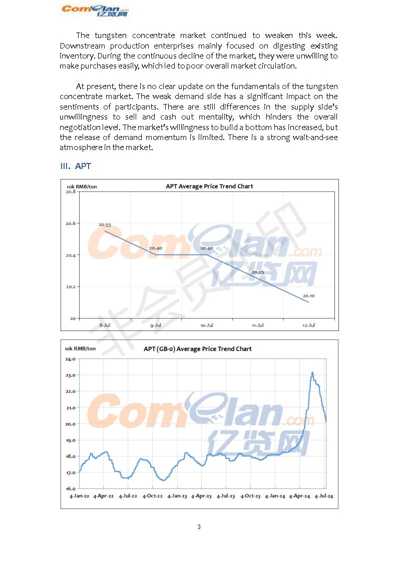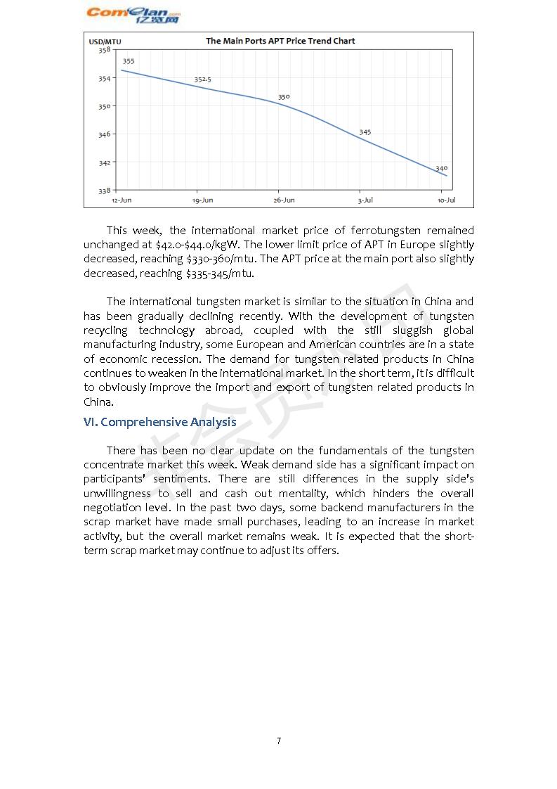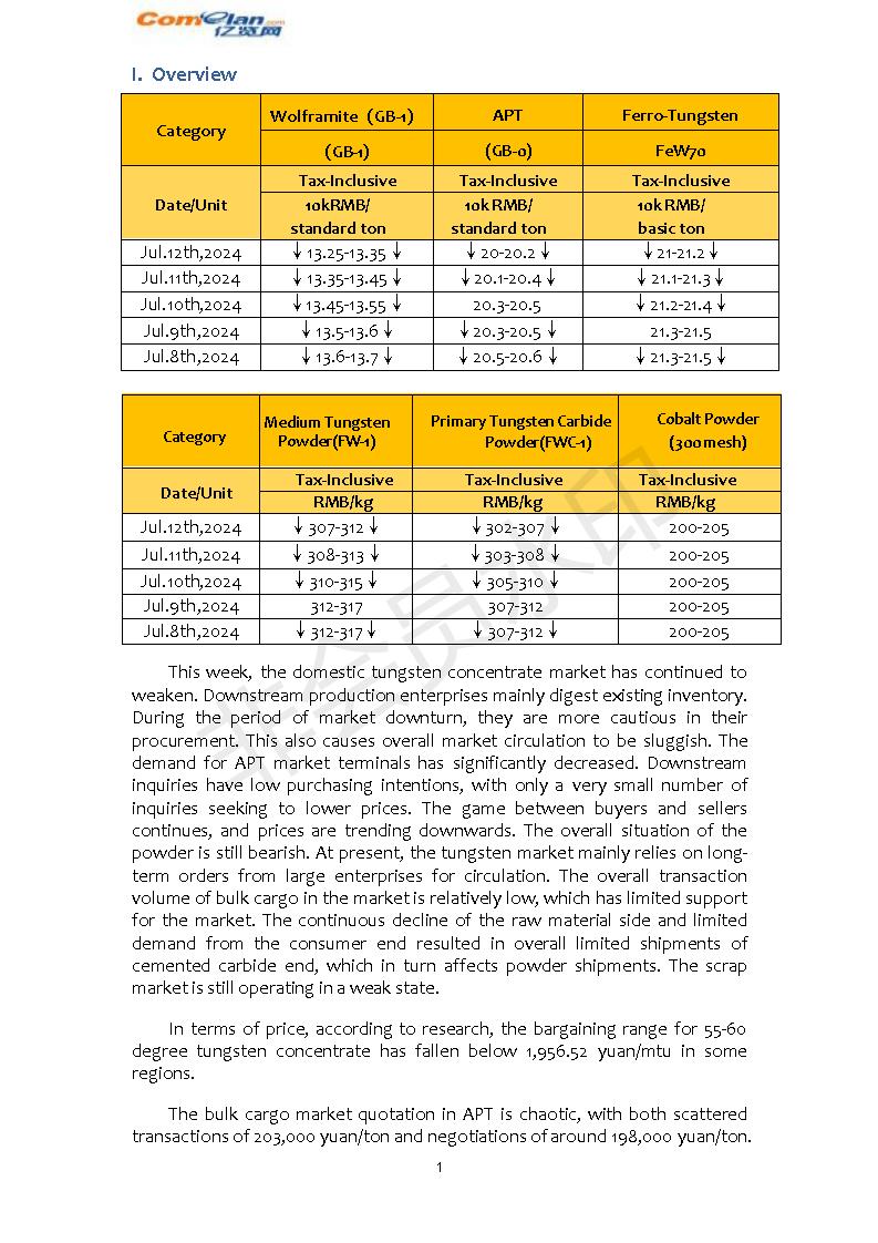 Comelan's Weekly Report on Tungsten Market(Jul.8th-12th,…