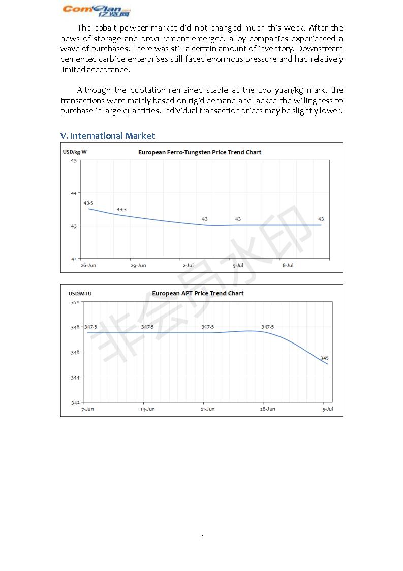 Comelan's Weekly Report on Tungsten Market(Jun.24th-28th…