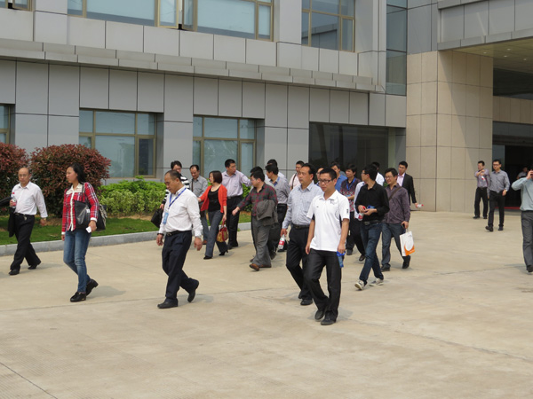 23日下午参观国内最为先进的硬质合金生产线——赣州澳克泰工具技术有限公司“八卦楼车间”,这一生产线为以色列进口高度机械化的标准模板,多个车间只有一两名工作人员,而且采用八卦方位涉及,使得每道工序都能有效向下传递,甚至采用无人机器车用于送料,令全体参观代表叹为观止,由于厂区内禁止拍照摄影,参观完后各代表合影留念。