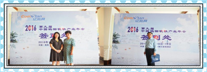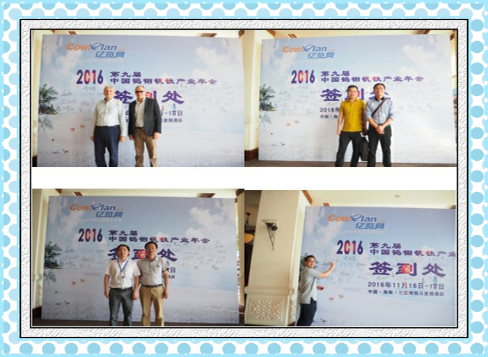 2016年11月16日至18日,2016年(第九届)中国钨钼钒钛产业年会在海南三亚顺利召开。本届会议由北京亿览网主办,由北京赛科康仑环保科技有限公司、葫芦岛东越金属有限公司、凌海恒泰钼业有限公司、哈尔滨金泰实业有限公司协办,由洛阳栾川钼业集团股份有限公司、伊春鹿鸣矿业有限公司、朝阳金达钼业有限责任公司、吉林大黑山钼业有限公司、丰宁鑫源矿业有限责任公司、内蒙古中西矿业有限公司、洛南县九龙矿业有限公司、台安金延有色金属加工有限公司、中山市钛会金属科技有限公司、海右(上海)机械有限公司赞助,得到国际钼协会、赣州市钨协会、攀枝花钒钛产业协会、美国Climax Molybdeum的支持。