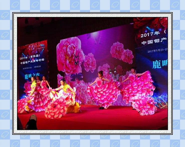 5月25日晚会议招待晚宴在伊春鹿鸣矿业有限公司总经理汪长祥先生的贺词中展开,来自国内外钼行人士近150人齐聚一堂,唱响钼行业的“鹿鸣之夜”。晚宴期间,会务组为大家精心挑选的演出节目将演完推上一轮又一轮的高潮,尤其是东北二人转节目,迎来现场代表的热烈掌声。